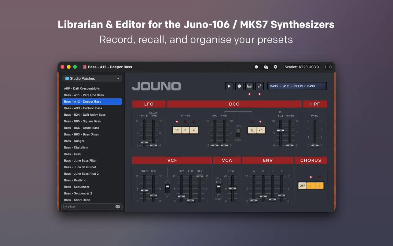 Juno 允许你通过 MIDI 接口来管理、加载和保存你的 Juno-106 / MKS7 合成器预设。